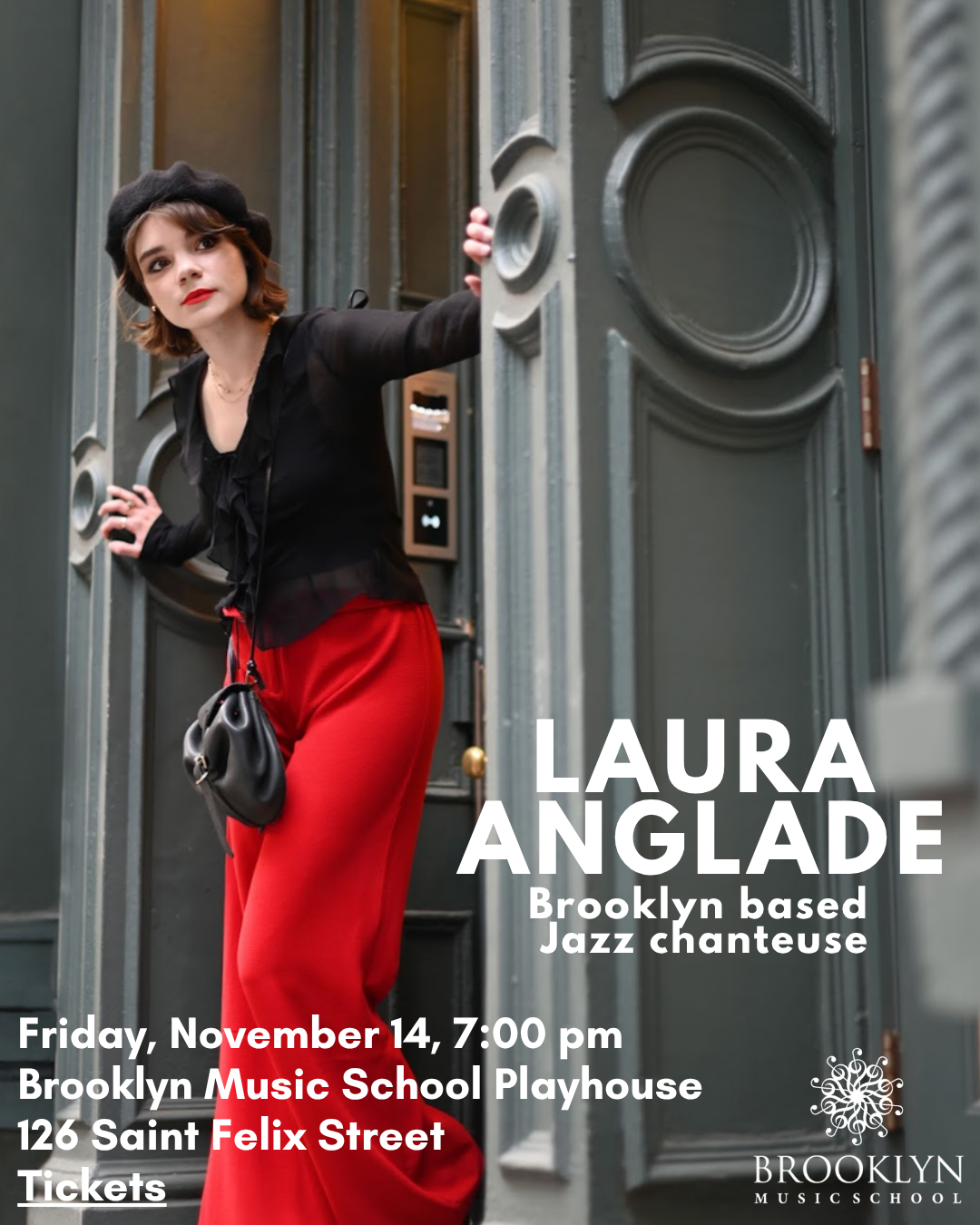 Brooklyn-based jazz chanteuse Laura Anglade is originally from the village of Brousse-le-Château in the south of France. An international touring artist, Laura has headlined jazz festivals across North America and Europe, captivating audiences through her innate storytelling. She has performed at renowned stages including Paris' Olympia and London’s Royal Festival Hall.